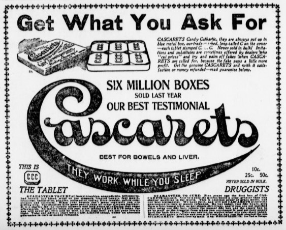 - Samira Kawash, “Cascarets Candy Cathartic,” March 15, 2010, https://candyprofessor.com/2010/03/15/cascarets-candy-cathartic/.