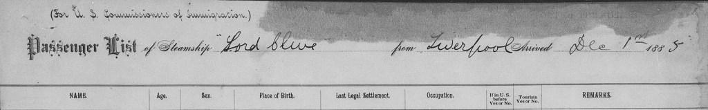 11 “Pennsylvania, Philadelphia Passenger Lists, 1883-1945,” database with images, FamilySearch (https://familysearch.org/ark:/61903/3:1:33SQ-GPBF-QKS?cc=1921481&wc=M616-JTP%3A214200701 : 21 May 2014), 006 – v. G, Jul 5, 1885-Dec 28, 1885 > image 393 of 448; citing NARA microfilm publication T840 (Washington, D.C.: National Archives and Records Administration, n.d.).
