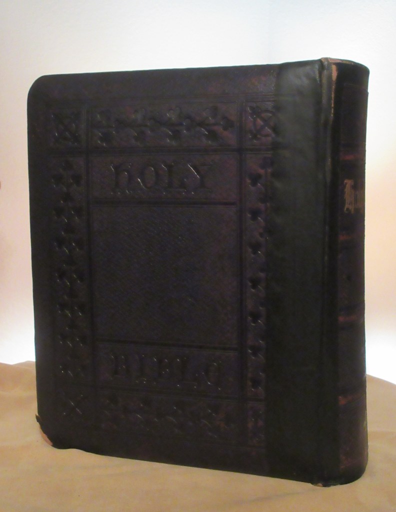 The Bible that our family calls “The Breitenstein Bible” came into the possession of my husband in the year 2000 after the passing of his mother. It is a volume of substantial size, measuring nearly 13 inches in height by 11 inches in width and five inches deep. Having a weight of 15 pounds, it is truly a hardback book. Its front and back covers, when tapped with the knuckles, sound as though they are made of wood. Within the covers there are approximately 2,025 pages of content, with additional pages of illustrations, maps and record pages for births, marriages and deaths. There are 1,009 pages devoted to the Old Testament, 315 pages for the New Testament, and it includes the Apocrypha, 104 pages. In addition, there are many supplemental resources for studying the Bible and for understanding the historical setting and the people of the Bible.
