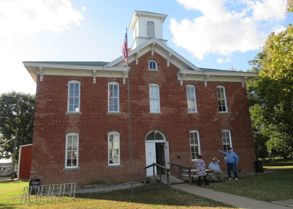 When we left Belton, we traveled on a winding country road (Route Y), which eventually took us across the state border, back into Kansas. Upon arriving at Louisburg, one of the towns Florence mentioned, our only option to continue toward Fort Scott was U. S. Highway 69, a modern freeway.  A few times we got off the freeway to drive through towns in Florence’s list.  Two of the towns are utilizing old buildings for public libraries.  In Prescott, the library had formerly been a school house and we were invited inside to see the upstairs room that was set up as an historical classroom. We finally arrived at our motel at 5:00 PM.