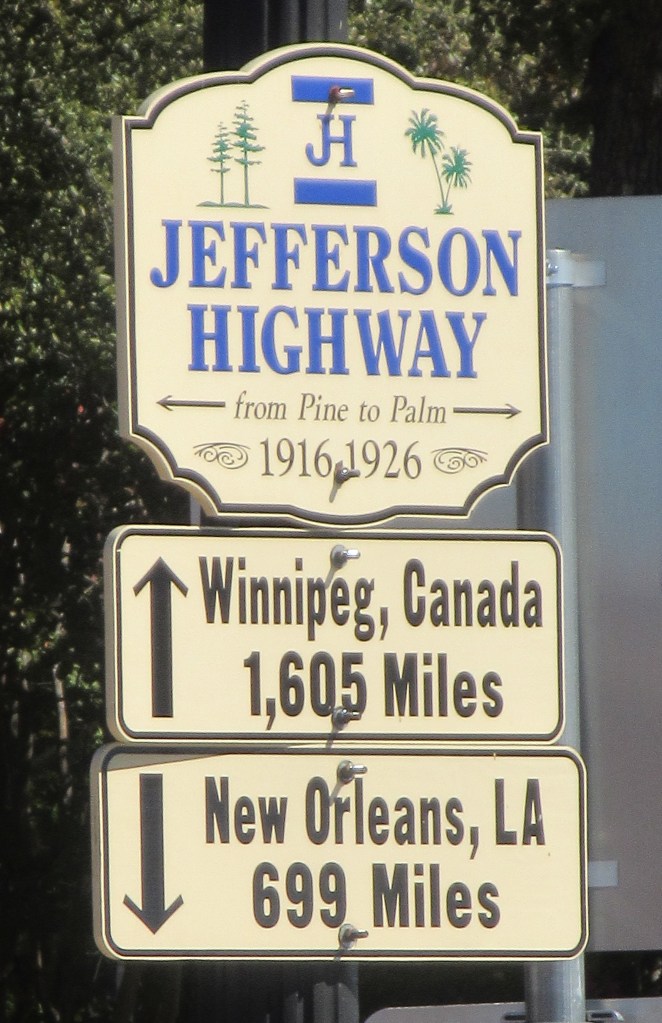 “Two notable social runs traversed the approximately 2,300-mile distance of the Jefferson Highway. The first occurred in July 1919. Participants traveled from New Orleans north to Winnipeg, Canada. The tour was organized by J. D. Clarkson, the general manager of the Jefferson Highway Association, and was called the “Palm to Pine Sociability Run” in honor of the designated starting and finishing points of the run. …
