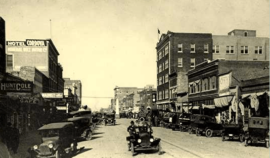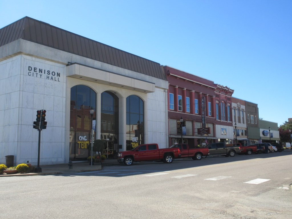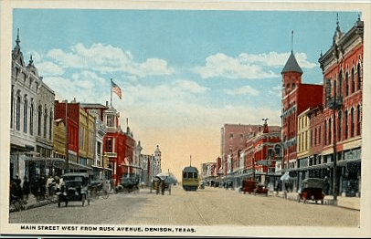 - Main Street West from Rusk Avenue, Denison, Texas, http://sites.rootsweb.com/~txpstcrd/Towns/Dennison/denisonmainst80.jpg.