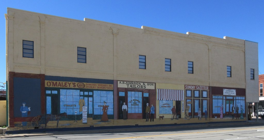 After two and a half days of rainy and overcast skies, we started our journey today with sunshine and light breezes – a beautiful day for searching for landmarks of Herbert and Lena’s trip to Texas. Our first stop was in Caddo, Oklahoma, where the Bevers family spent the previous night one hundred years ago.